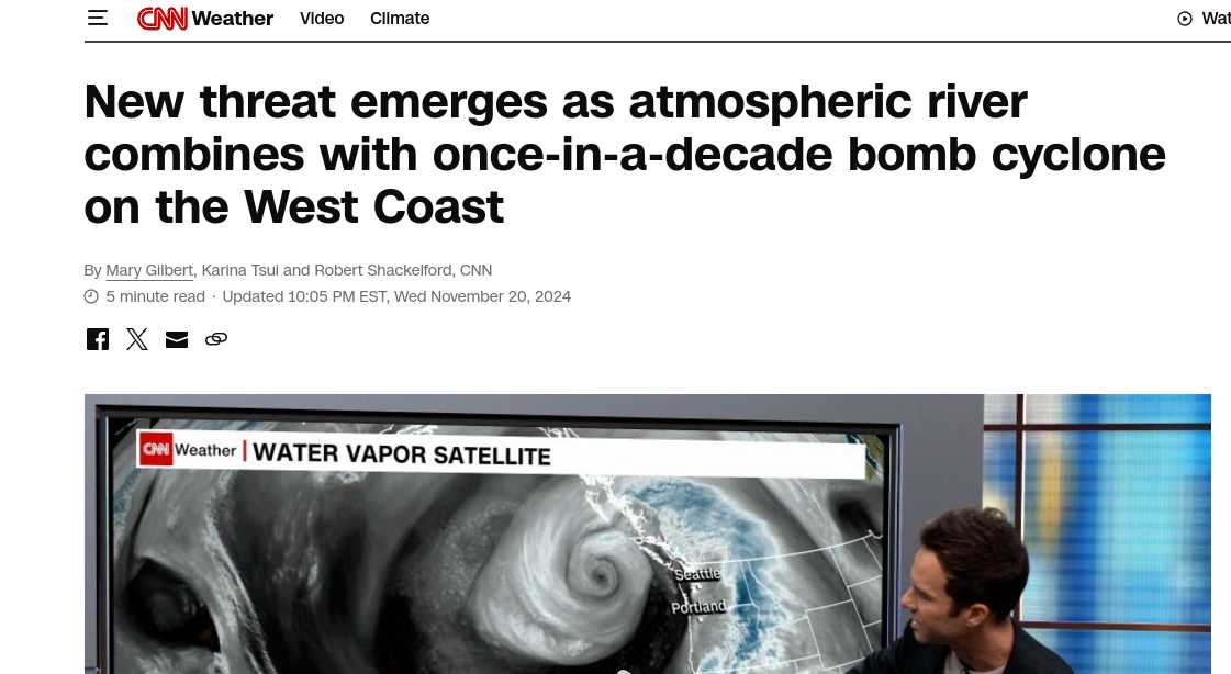 The headlines are funny, as they state the bomb cyclone 'meets' the atmospheric river.  That is such mucked up physics.  Like I said yesterday, the cyclone is stuck, which is the worst.